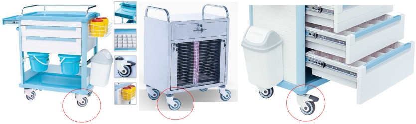 Due to High quality,low noise and hospital environment friendly,our hospital bed casters also widely used as medical trolley casters, medical computer cart casters