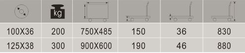 Wheel Size:100mm x 36mm ; 125mm x 38mm